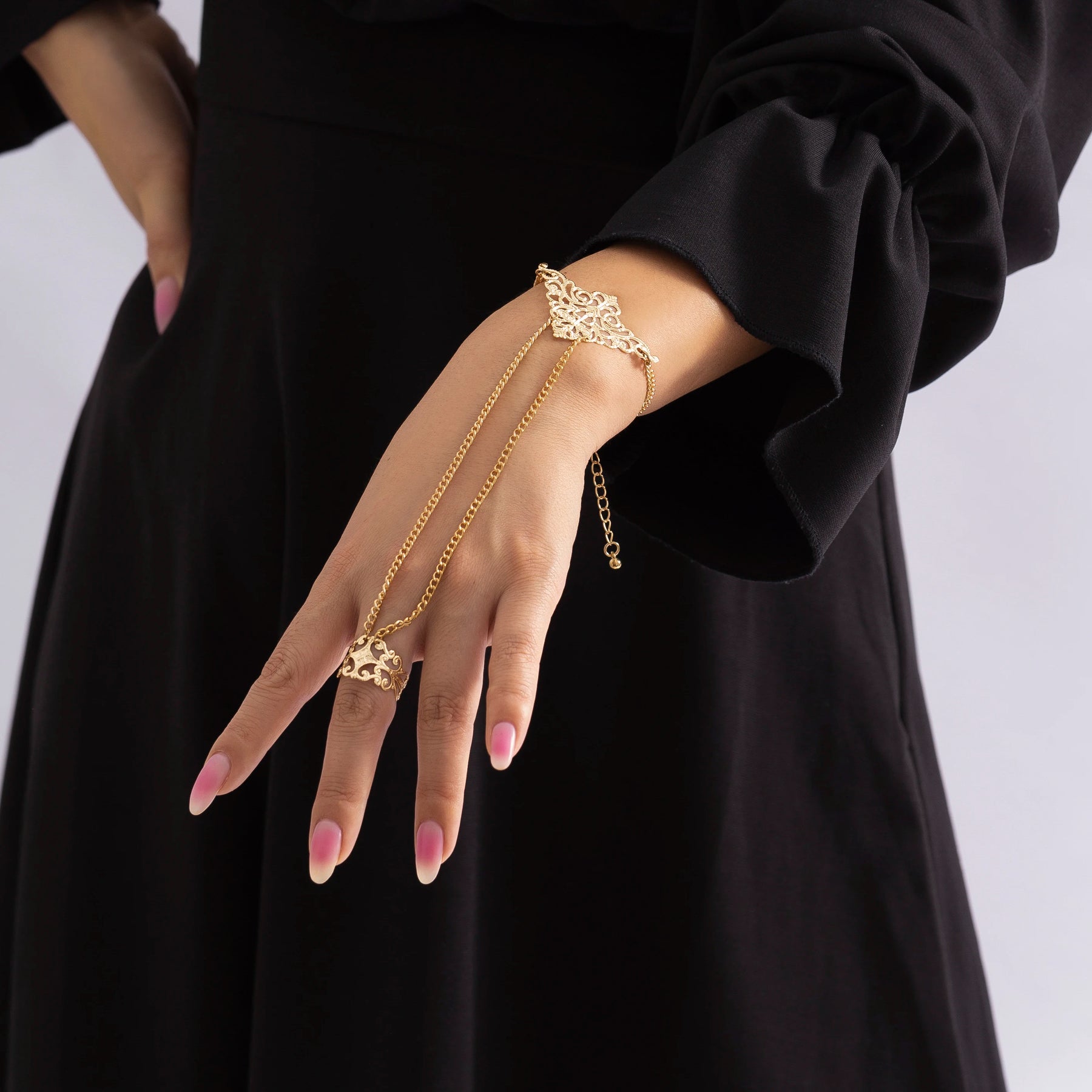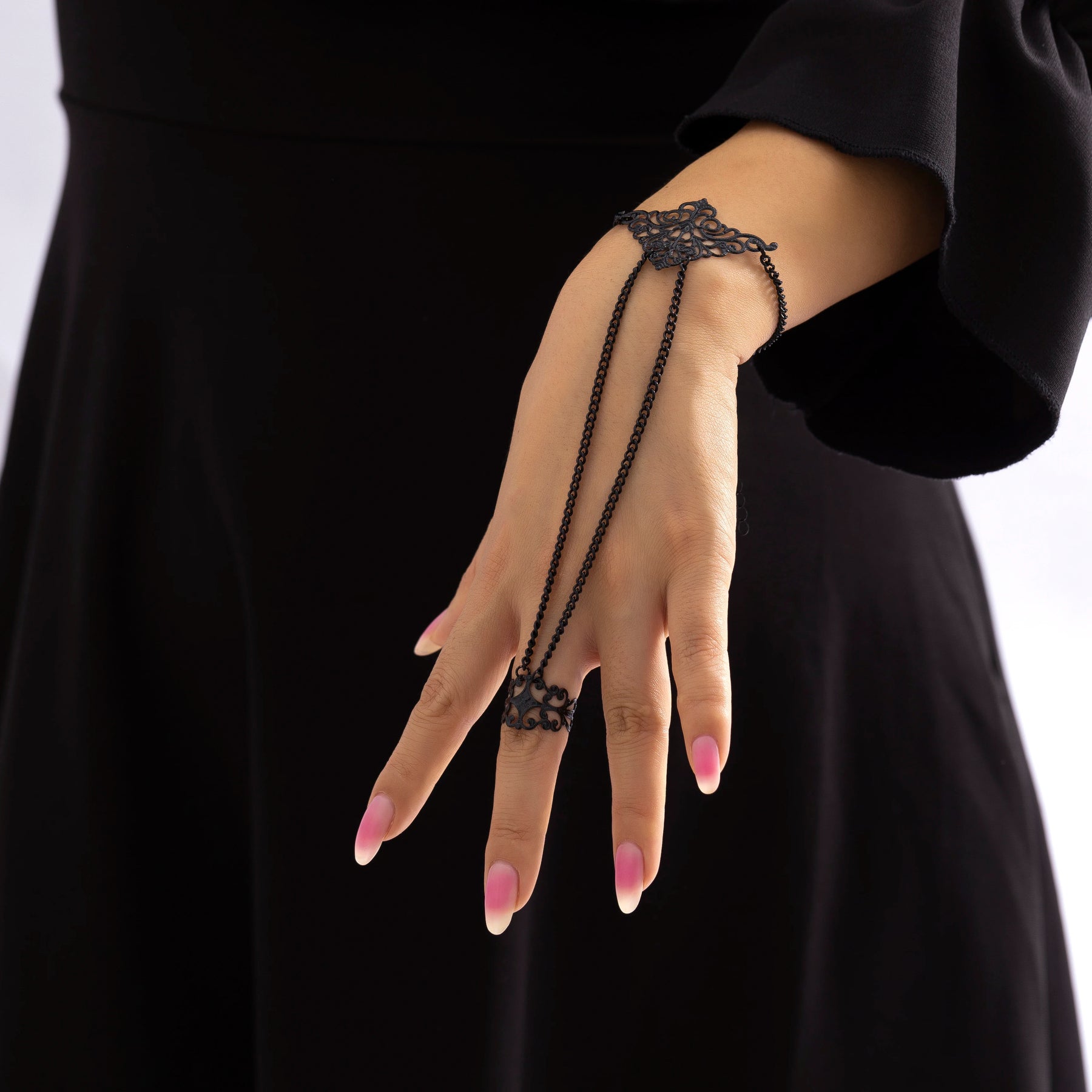 - Výnimočná konštrukcia: Jemná čipka sa stretáva s precízne vyrobenými retiazkami, vytvárajúc efektný motív, ktorý ozdobí vašu ruku a zápästie.
