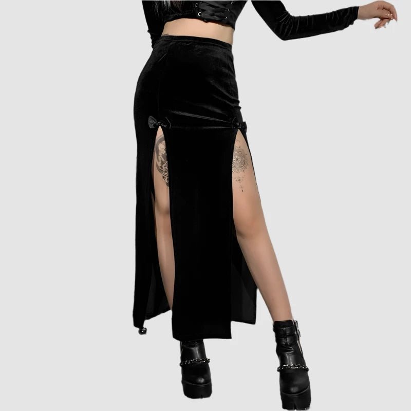 Čierna Gotická Sukňa s Vysokým Rozparkom