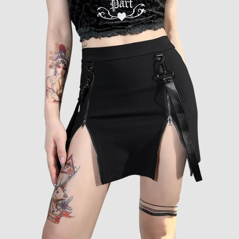 Čierna Punk Sukňa s Vysokým Pásom s Pásikmi