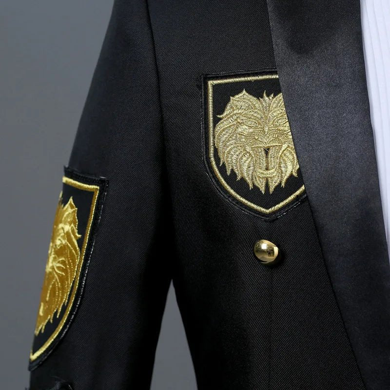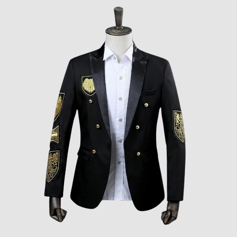 - Dekorácie: Zlaté výšivky - exkluzívne detaily, ktoré dodávajú saku výnimočný charakter