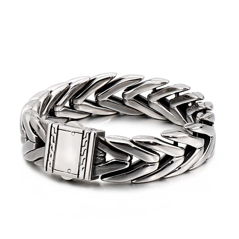 Umné vyberanie jednoduchosti je často dôkazom múdrosti a elegancie. Pozri sa na tieto nádherné gotické náramky s hrubými článkami, ktoré sú široké a masívne ako u motorkára. Vyjadri svoj štýl nosením ich každý deň, v kombinácii s našimi masívnymi gotickými prsteňmi.