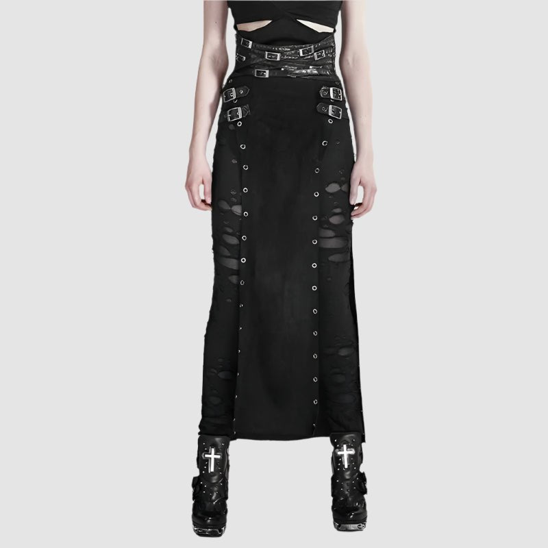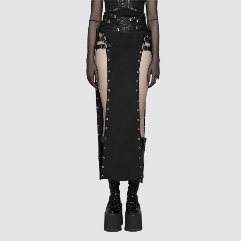 - Strih: dlhá sukňa s vysokým pásom a rozparkom na boku