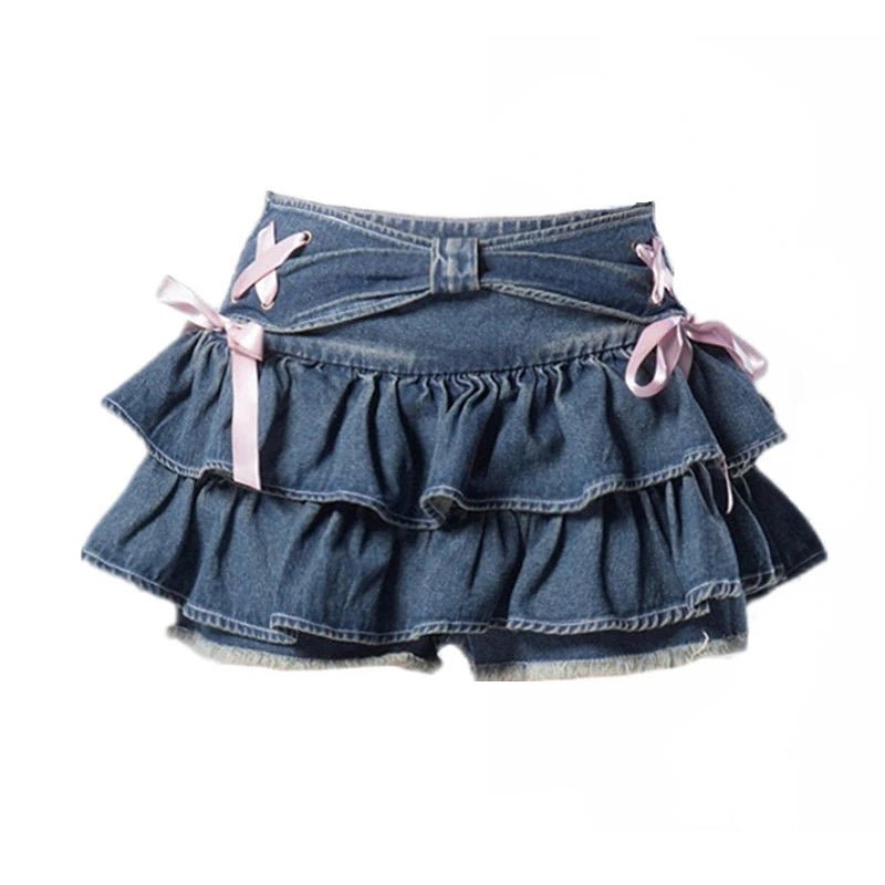 Mini džínsová sukňa s volánikmi