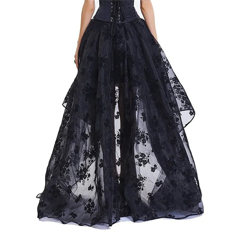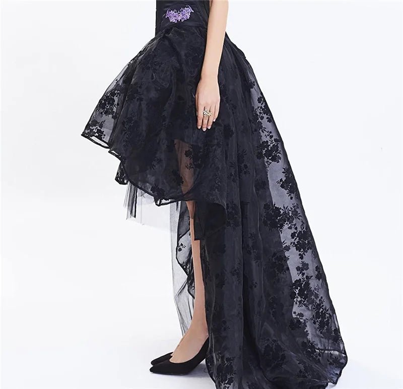 Nepravidelná Čierna Sukňa s Kvetinovými Vzorami